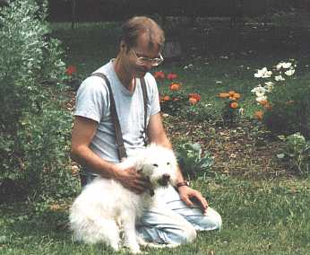 Wayne and Quinn the Eskimo in the garden. Quinn was fed home cooked, organic food (usually,